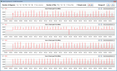 Il nostro stress test (Prime95 e FurMark in funzione per un'ora) ha risultati diversi a seconda che il dispositivo sia alimentato a rete o a batteria. La frequenza di clock del processore scende da 4 - 4,1 GHz all'inizio a circa 3,3 - 3,6 GHz, dove rimane. La frequenza di clock della GPU, invece, scende da circa 1200 MHz a 1050 MHz. La frequenza di clock della batteria è di 2,5 GHz (CPU) e 1500 MHz (GPU). Lo stress test è uno scenario estremo che non si verifica in quanto tale durante l'uso quotidiano. Lo usiamo per scoprire se il sistema rimane stabile anche sotto carico massimo.