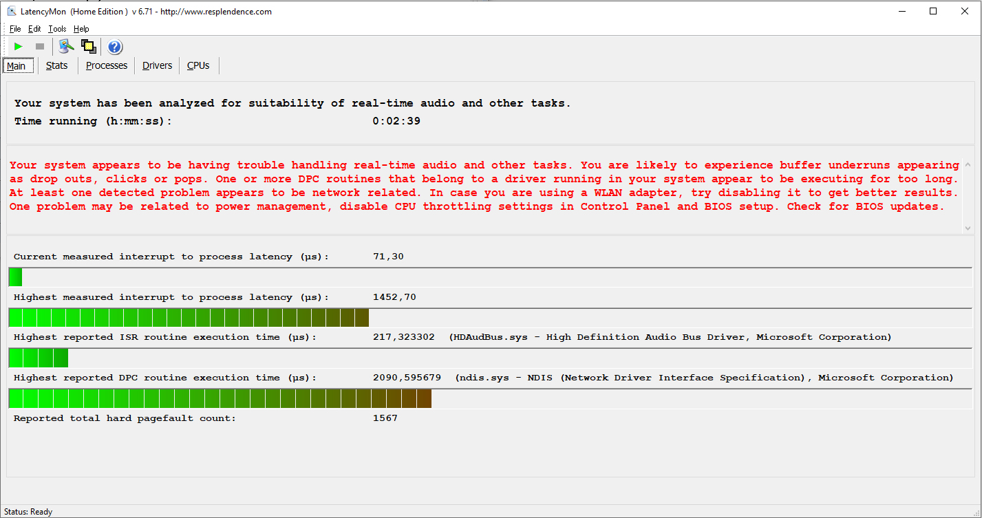 La CPU e la GPU elaborano il nostro stress test (Prime95 e FurMark funzionano per almeno un'ora) rispettivamente a 3,1 GHz e da 1.400 a 1.450 MHz. Con la batteria, le frequenze di clock sono rispettivamente da 1,6 a 1,9 GHz (CPU) e 300 MHz (GPU). Lo stress test rappresenta uno scenario estremo che non si verifica nella vita di tutti i giorni. Utilizziamo questo test per verificare se il sistema rimane stabile anche a pieno carico.