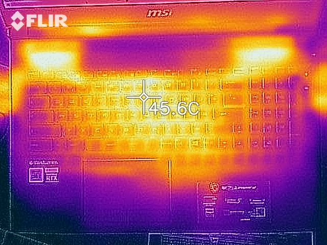 Il GL75 non si riscalda in modo particolare. Durante lo stress test registriamo temperature leggermente superiori a 40 °C (~104 °F) in alcuni punti di misura. Lo sviluppo di calore è allo stesso livello quando si esegue la nostra prova The Witcher 3. Nell'uso quotidiano, i valori sono nella zona verde.