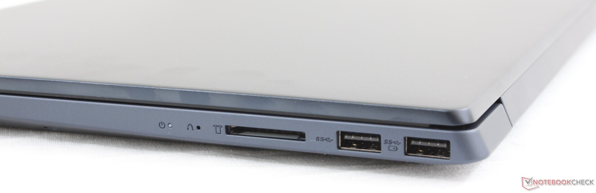 Una scheda SD completamente inserita sporge ancora di oltre la metà della sua lunghezza risultando poco sicura durante il trasporto. In confronto, le schede SD inserite su altri portatili come il ThinkPad T490 sono quasi a filo con il bordo.