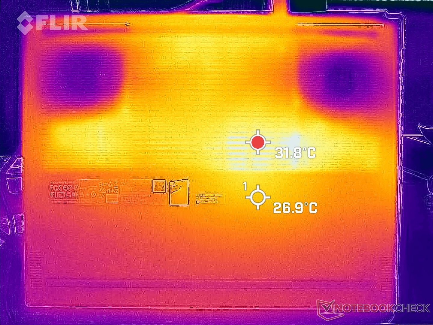 (-) Il lato inferiore si riscalda fino ad un massimo di 48.6 °C / 119 F, rispetto alla media di 43.3 °C / 110 F
