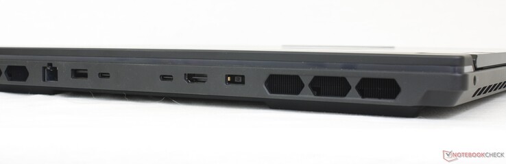 Solo le due porte USB-C posteriori possono essere utilizzate per monitor esterni o per ricaricare il portatile tramite Power Delivery. La terza porta USB-C lungo il bordo destro è riservata ai dati e alla ricarica di dispositivi esterni.