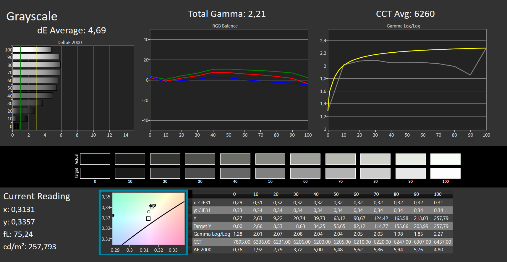 ΔE Greyscale Calman: 4.69 | ∀{0.09-98 Ø5}