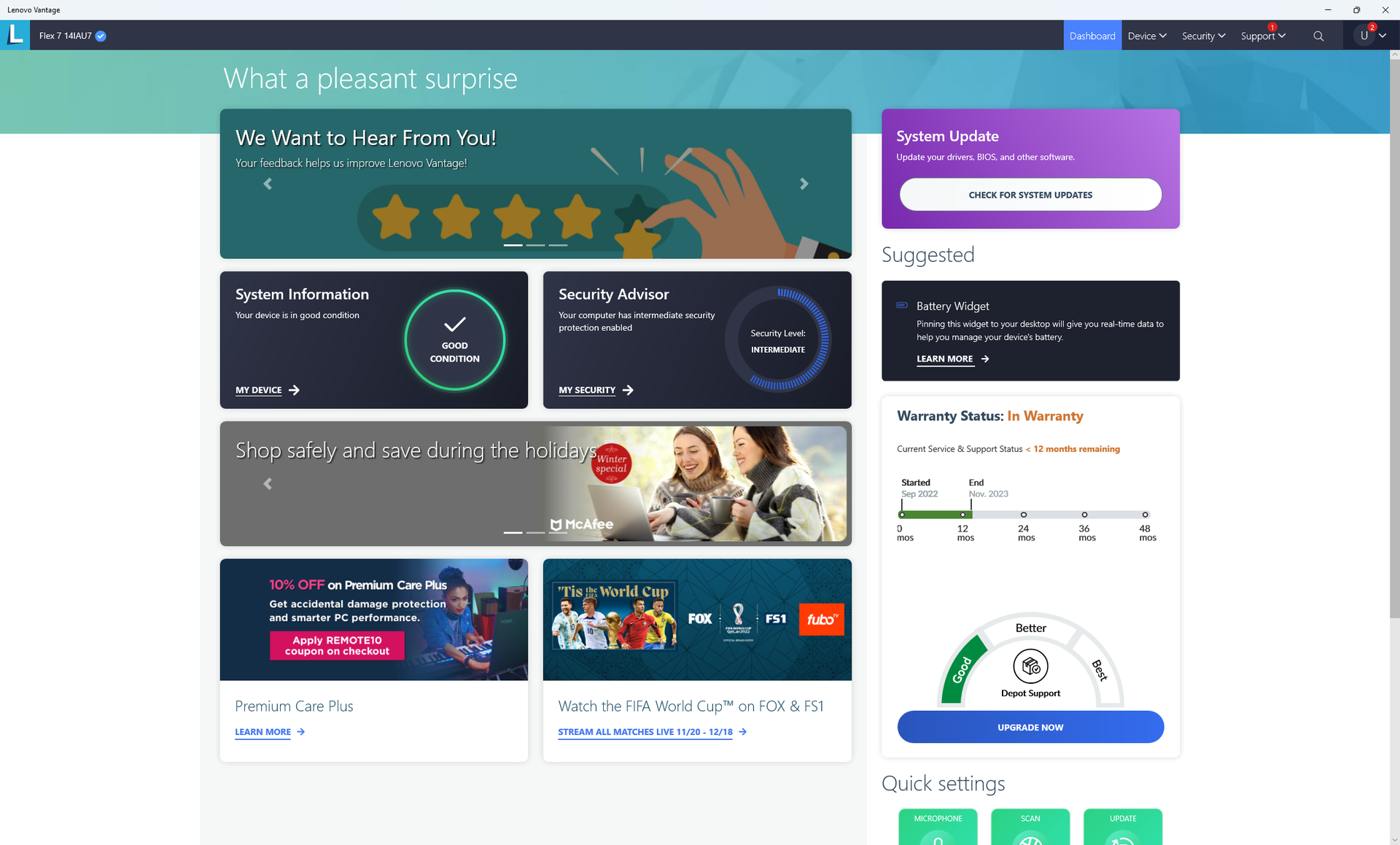 La capacità della batteria è aumentata da 53 Wh del Flex 5i a 59 Wh del Flex 7i. L'autonomia è comunque inferiore di circa due ore sulla nostra unità Flex 7i.