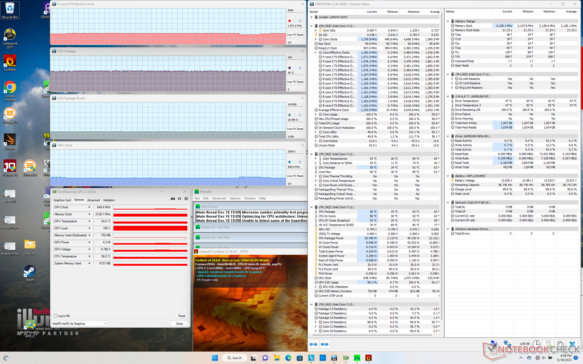 | Prime95 + FurMark Stress (modalità prestazioni estreme) | 1,5 | 648 | 58 |