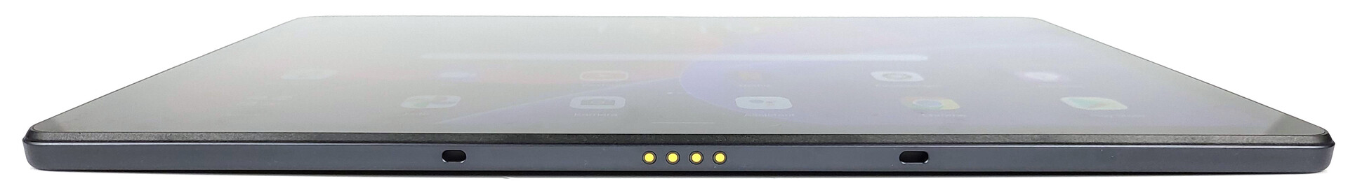 Ci sono dei perni a molla con quattro elementi di contatto nella parte inferiore del case, che possono essere utilizzati per il trasferimento dei dati e per caricare la copertura magnetica opzionale della tastiera. Inoltre, il tablet Lenovo ha una porta USB-C che è basata sullo standard 2.0 e può essere utilizzata per caricare il dispositivo. Inoltre, la porta funziona come un host OTG tramite un adattatore. Questo permette al Tab P11 Plus di riconoscere periferiche come chiavette USB o tastiere esterne. Supporta anche la trasmissione wireless di contenuti di visualizzazione ad un monitor esterno, una caratteristica che ha funzionato senza problemi nel test con una TV Android di Sony.