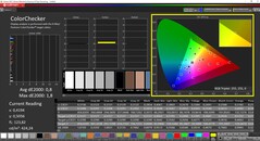 L'analisi CalMAN mostra anche che i colori sono già visualizzati con una deviazione DeltaE2000 molto bassa di 1,9 franco fabbrica. Questo valore può ancora essere migliorato a 0,8 con una calibrazione. Il file ICC corrispondente può essere scaricato nella finestra in alto a destra accanto al grafico dell'illuminazione dello schermo