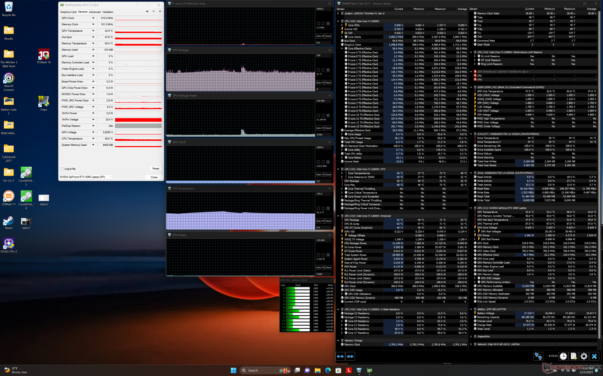 La nostra unità di prova è generalmente più esigente rispetto alla configurazione meno potente con RTX 2000, il che spiega la minore durata della batteria nella prossima sezione. Eseguire Witcher 3 per rappresentare carichi impegnativi, ad esempio, consumerebbe il 37% in più di energia.