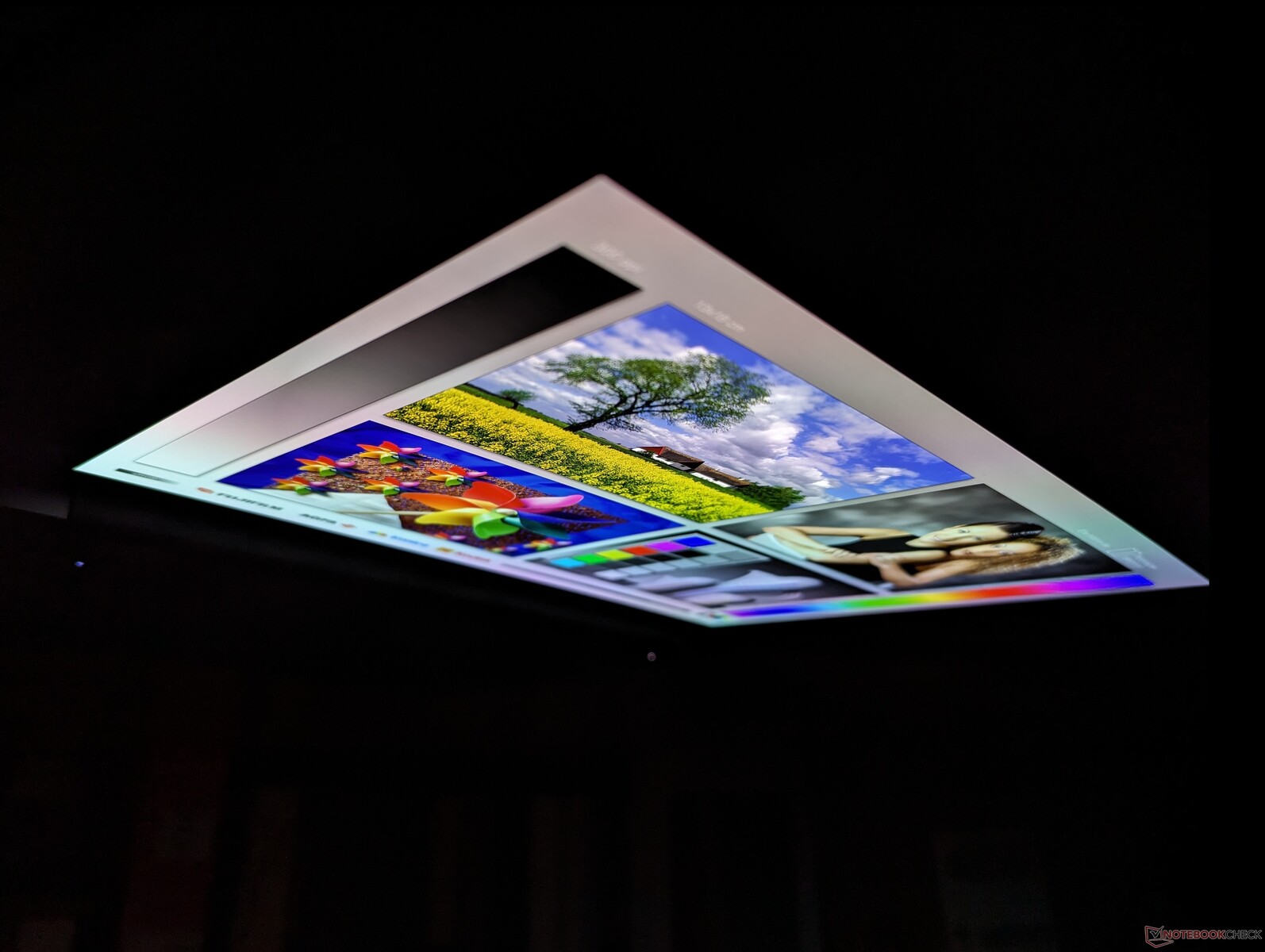 Il pannello OLED 4K offre colori superiori, tempi di risposta più rapidi, funzionalità touchscreen e una risoluzione nativa più densa rispetto al pannello IPS 2K della nostra precedente configurazione con RTX 2000. Tuttavia, questi vantaggi hanno il costo di una frequenza di aggiornamento nativa più lenta, pari a soli 60 Hz, e di una luminosità massima più debole, come mostra la nostra tabella sottostante. Pertanto, il pannello IPS potrebbe essere preferibile a seconda dell'applicazione. È un peccato che Lenovo non offra opzioni OLED a 120 Hz come il modello Vivobook Pro 16X.