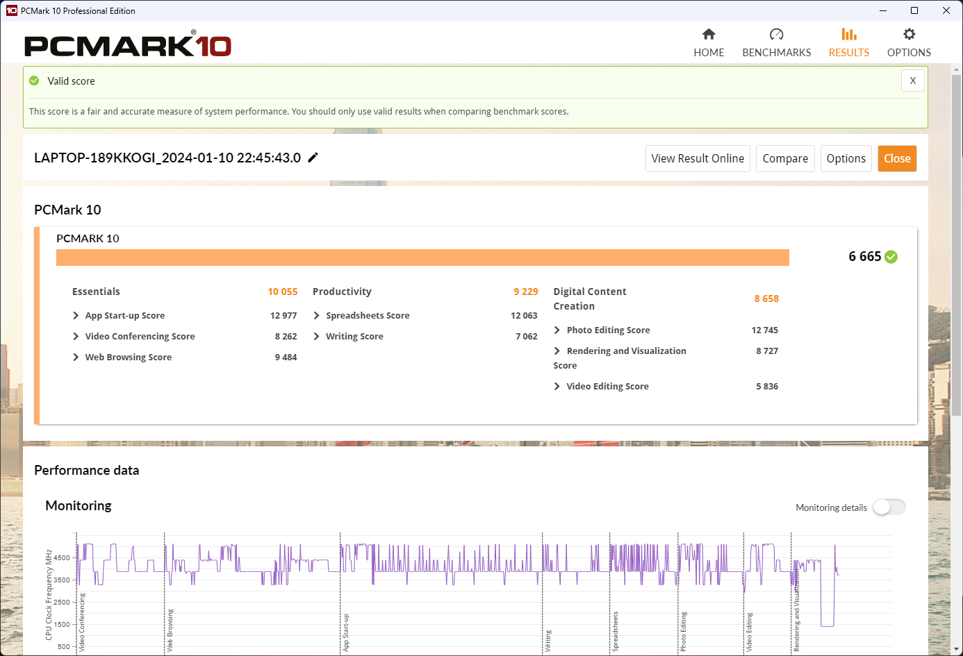 La durata della batteria è stata altrettanto buona nel nostro test video, raggiungendo quasi le 10 ore. Si tratta di un risultato soddisfacente, soprattutto se si considera che la batteria non è molto capiente, con 52 Wh.