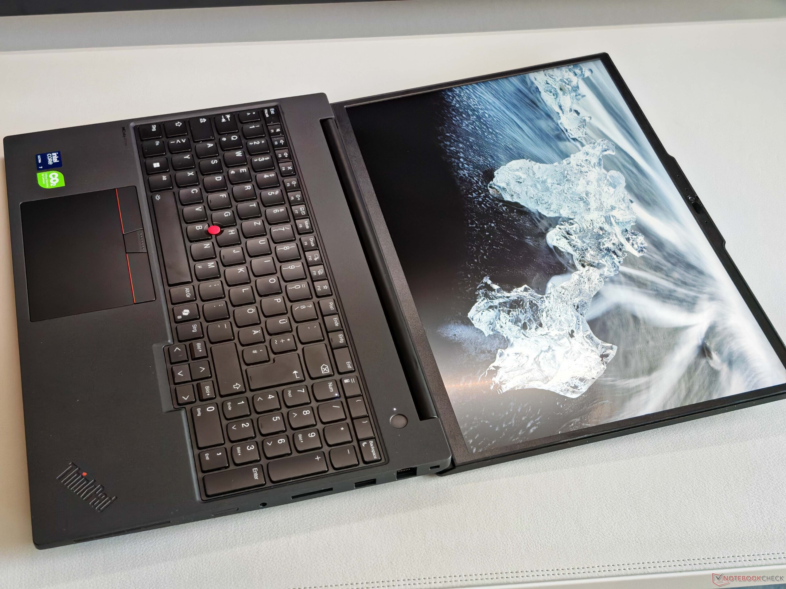 Non c'è molto di cui lamentarsi in termini di connessioni, ma una delle due porte Thunderbolt 4 è sempre occupata dall'alimentatore. Il modulo Wi-Fi 7 raggiunge velocità di trasferimento buone e stabili, ed è disponibile anche una porta Ethernet. C'è spazio anche per un modulo WWAN, ma le antenne non sono preindirizzate (non sono predisposte per WWAN). Il lettore di schede raggiunge velocità di trasferimento medie e la webcam da 5 MP (con otturatore + IR) scatta foto utilizzabili.