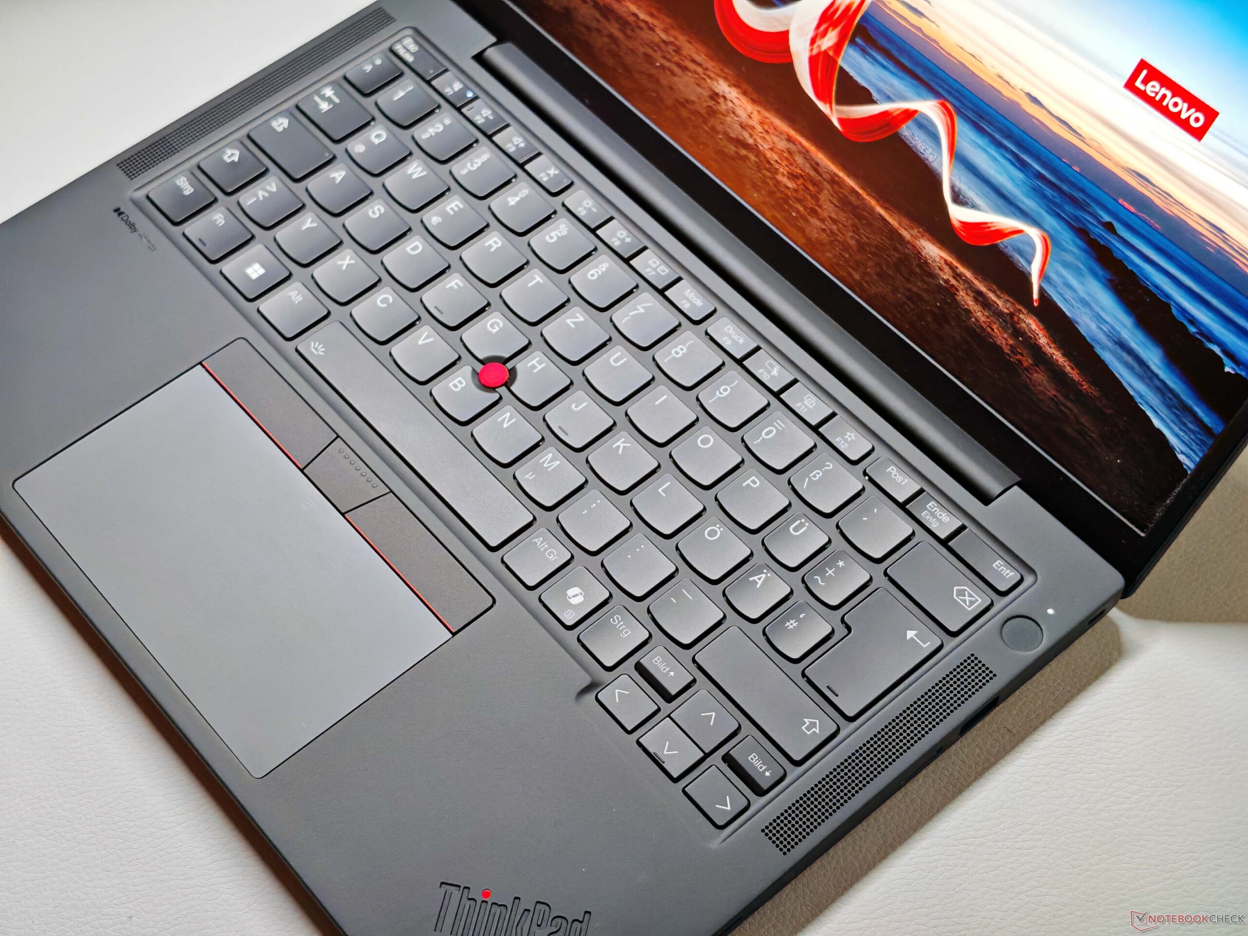 La tastiera retroilluminata offre una corsa di 1,5 mm per la maggior parte dei tasti, mentre i tasti G, H e B (che si trovano accanto al TrackPoint) e i tasti funzione offrono solo 1,35 mm. Nel complesso, l'esperienza di digitazione è semplicemente nella media anche per gli standard moderni di ThinkPad e non è più realmente paragonabile ai modelli più vecchi, come il ThinkPad X1 Carbon G6 del 2018 ThinkPad X1 Carbon G6 del 2018. La pressione dei tasti è precisa, ma la sensazione generale di digitazione non è particolarmente confortevole.