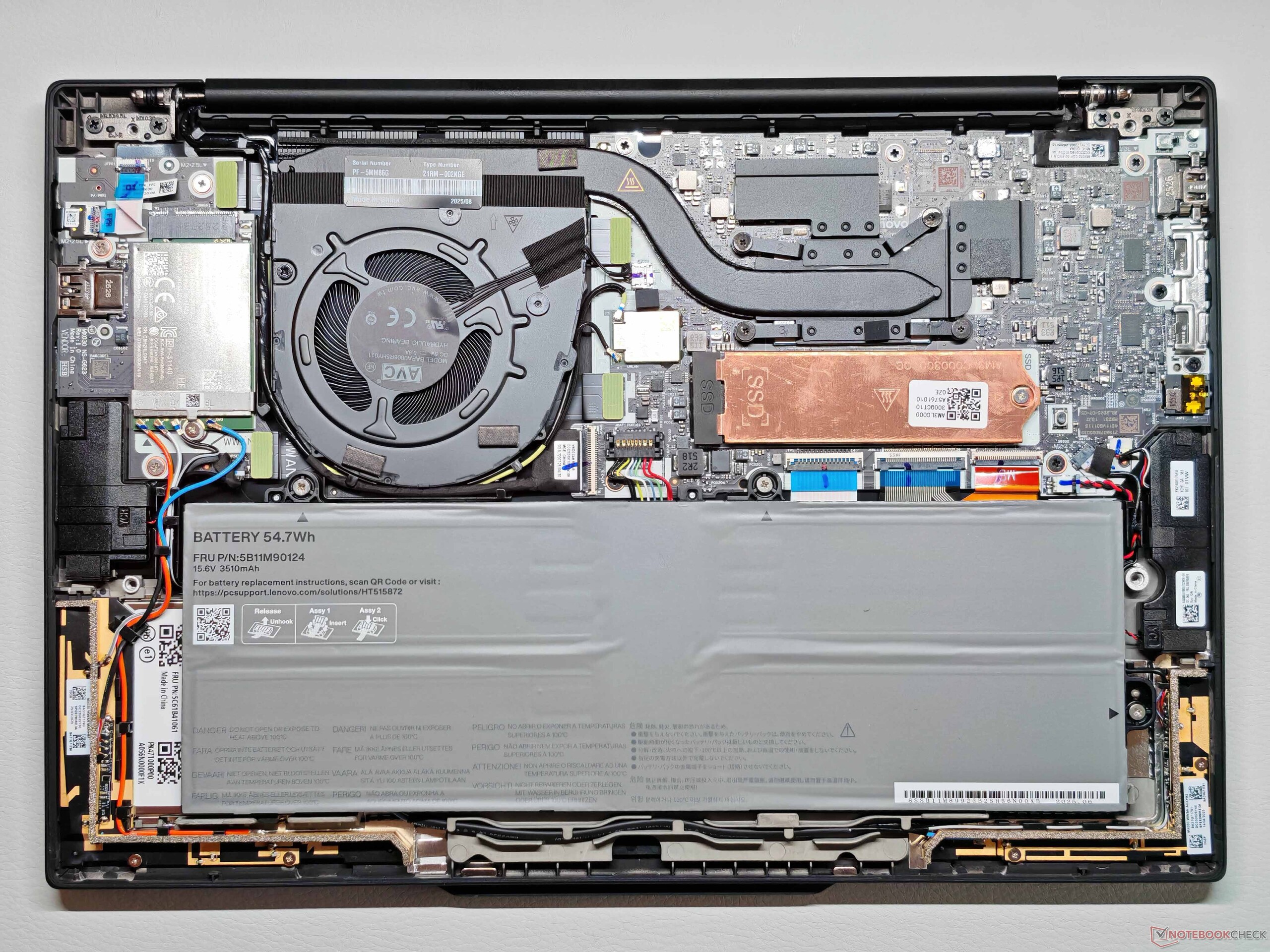 In termini di porte, ora c'è un solo connettore USB-A sul lato destro, mentre le due porte USB-C, compresa la Thunderbolt 4, si trovano sul lato sinistro. Il modulo WLAN supporta il Wi-Fi 7 e offre velocità di trasferimento molto elevate e stabili. La fotocamera da 5 MP (inclusa IR) offre una qualità d'immagine accettabile e dispone di un otturatore meccanico.