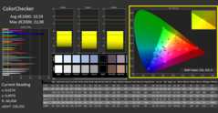 L'intero display è coperto da un velo grigio, i colori appaiono molto pallidi, e con valori di copertura dello spazio colore del 58% sRGB e 40% AdobeRGB, la riproduzione dei colori è tutt'altro che accurata. La tinta blu che misuriamo non migliora le cose, e non è il caso di guardare i valori DeltaE. Con una media di 231 cd/m², anche la luminosità è piuttosto scarsa, ma la distribuzione della luminosità dell'84% va bene.