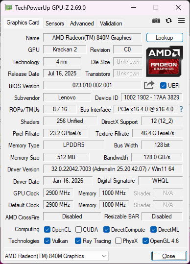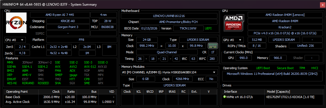 | Lenovo Yoga 7 2-in-1 16AGP11 AMD Ryzen AI 7 445 ⎘ AMD Radeon 840M ⎘ 24 GB Memoria | Prezzo di listino: 1250 USD | 1.8 kg | 15.85 mm | 16.00" 1920x1200 142 PPI OLED | |