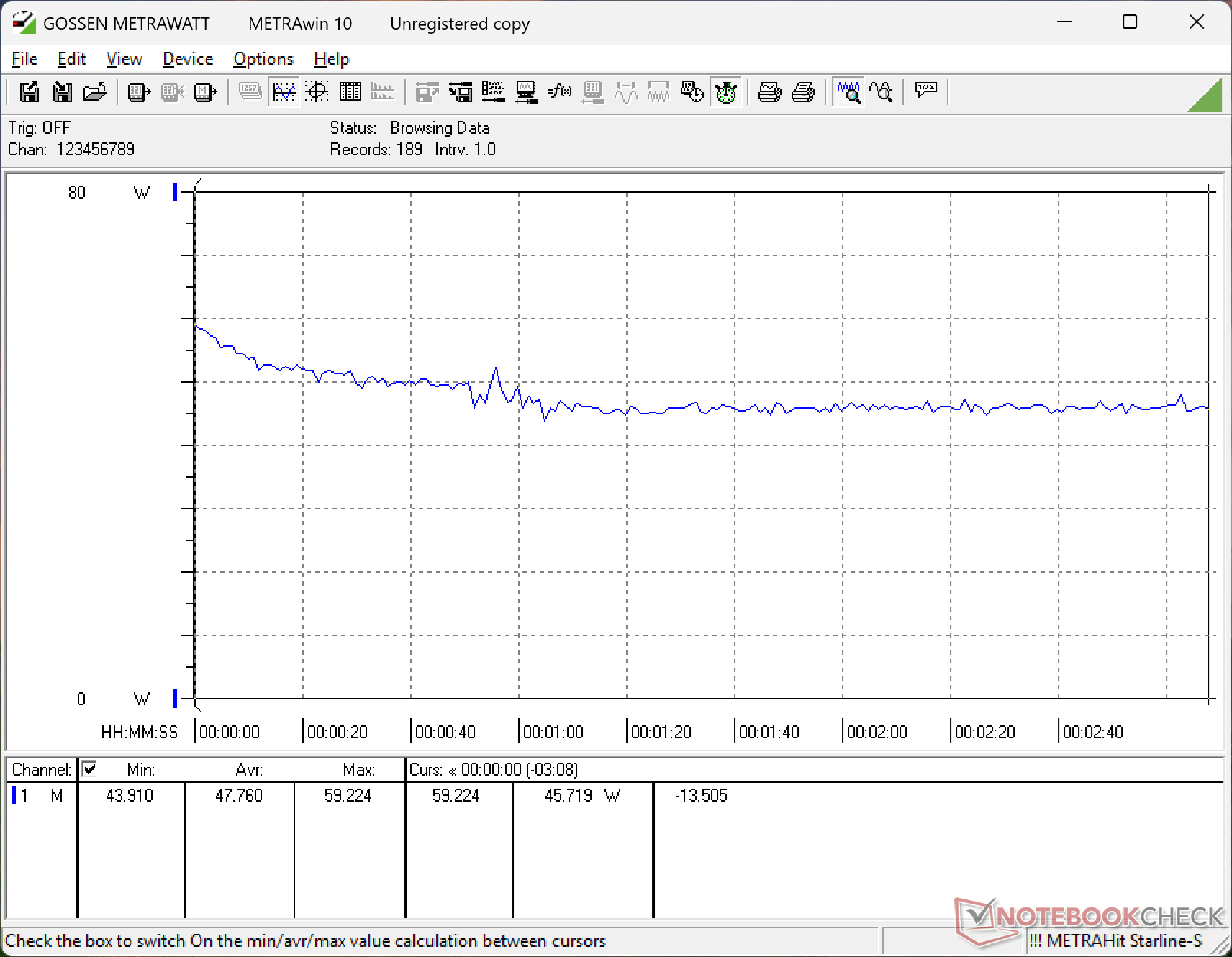 I tempi di esecuzione non sono neanche lontanamente paragonabili a quelli della versione Lunar Lake-V di questo modello, con una differenza di diverse ore tra i due. Tuttavia, oltre 12 ore di navigazione WLAN sono probabilmente più che sufficienti per la maggior parte degli utenti.