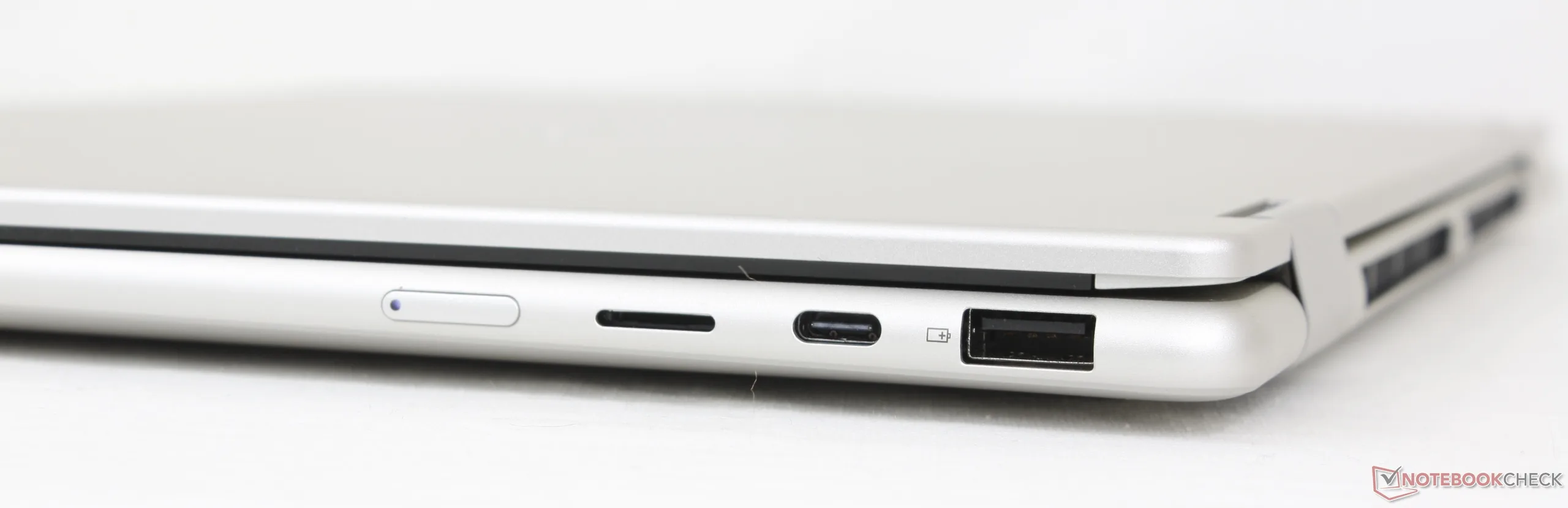 Lo Yoga 7 2-in-1 16 2026 adotta lo stesso design esterno del modello 2025 modello 2025 e quindi tutti i nostri commenti sul modello dello scorso anno sono ancora validi. Tenga presente che, mentre le opzioni delle porte rimangono le stesse di prima, le porte USB-C del nostro modello AMD non supportano Thunderbolt e sono limitate a soli 10 Gbps, mentre le stesse porte USB-C del modello 2025 Intel sono molto più veloci, fino a 40 Gbps.