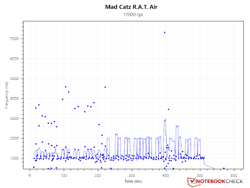 Come accennato in precedenza, il R.A.T. Air è stato impostato per funzionare ad una frequenza di interrogazione di 1.000 Hz con un intervallo di aggiornamento di 1 ms. La frequenza di polling è abbastanza costante, ma occasionalmente aumenta fino a 4.000 Hz. Tuttavia, non sembra rimanere più lunga di 10 ms ad una frequenza più alta.