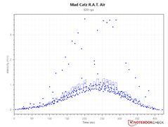 Il R.A.T. Air mostra un ritardo di input di 3,24 ms a 800 DPI, che è significativamente più basso rispetto agli 8 ms dei mouse desktop tradizionali e non ha avuto alcun impatto sul gioco. Il ritardo in input ha mostrato una diminuzione con l'aumento dei DPI.