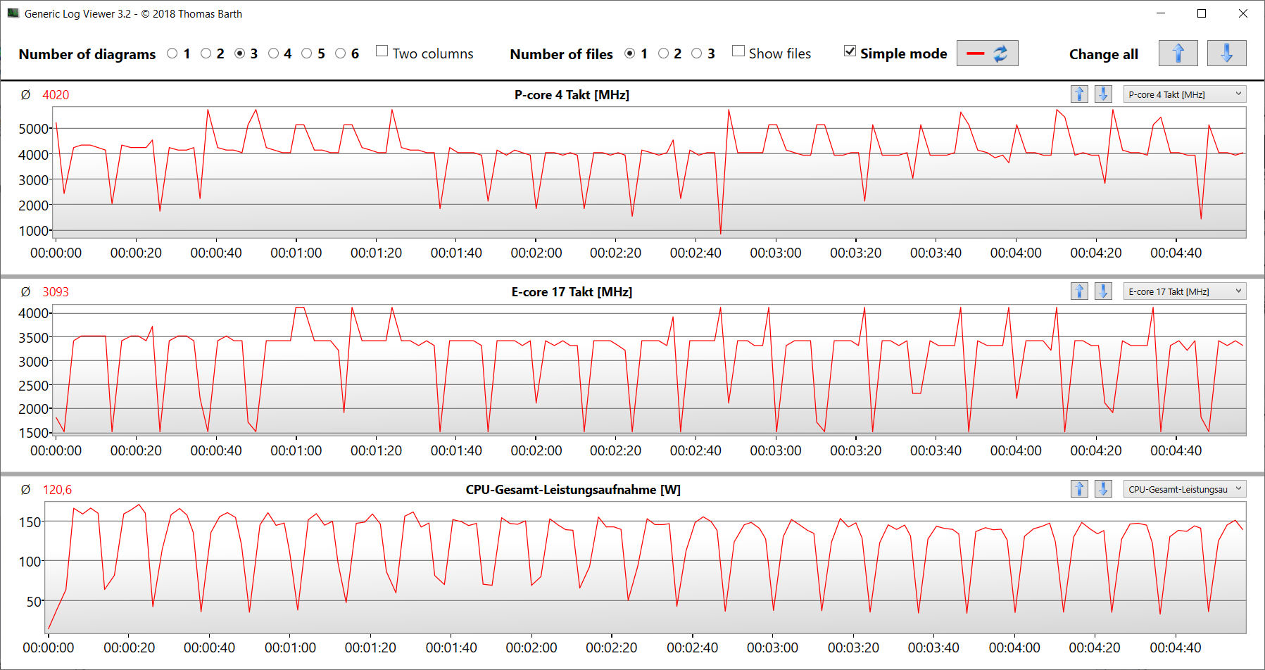 Il test Witcher 3 e lo stress test vengono eseguiti con un consumo energetico leggermente inferiore. L'alimentatore da 330 W si dimostra adeguato durante lo stress.