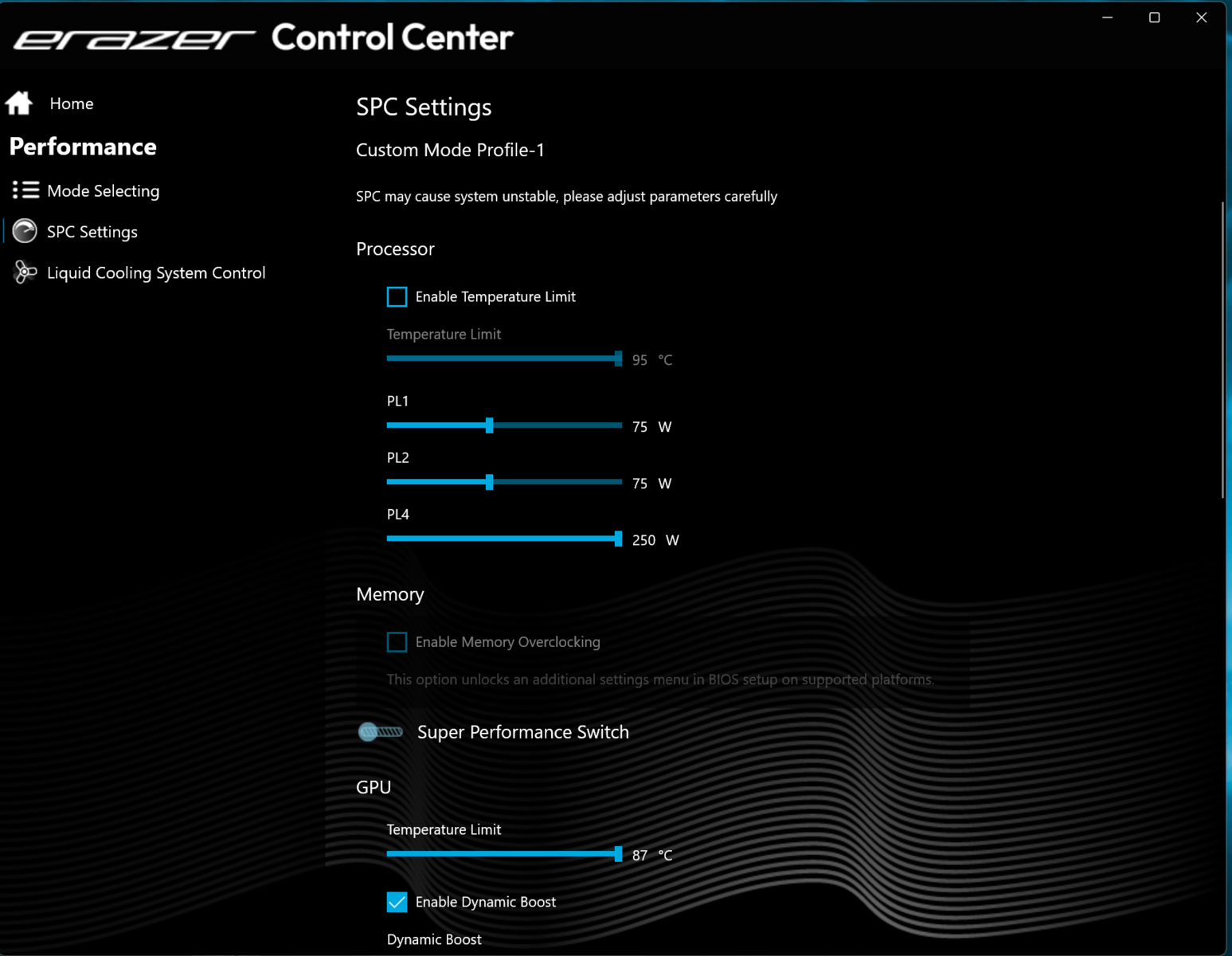 La "Modalità silenziosa" assicura un livello di rumore molto basso, ma fornisce comunque una potenza più che sufficiente per le attività quotidiane, come l'ufficio e internet. In questa modalità è possibile anche giocare. Tuttavia, la frequenza dei fotogrammi è bloccata a 30 fps dal sistema nel nostro test Witcher 3.