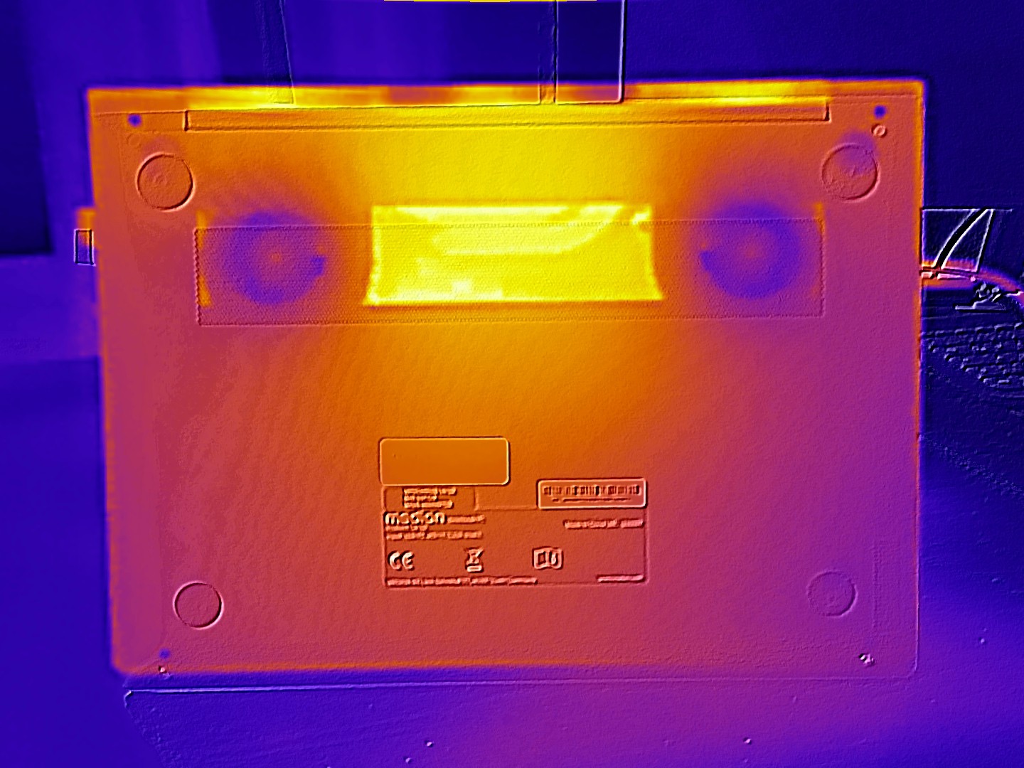 (±) 3: The average temperature for the upper side is 35.8 °C / 96 F, compared to the average of 30.8 °C / 87 F for the class Subnotebook.