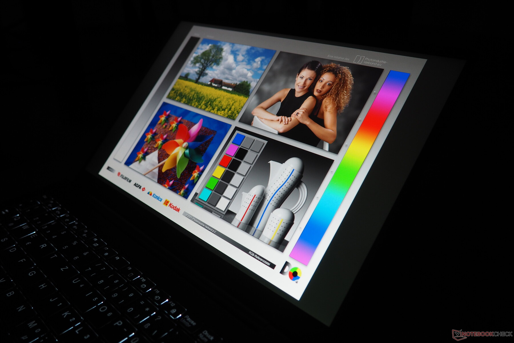 Il suo display è molto simile a quello di SPRCHRGD 14 S1. Medion ha optato ancora una volta per un pannello IPS con 2.880 x 1.800 pixel, che garantisce un'immagine molto nitida. anche i 120 Hz sono un punto a favore, anche se i tempi di risposta che abbiamo misurato sono piuttosto scarsi. Gli utenti professionali presteranno maggiore attenzione alla copertura dello spazio colore: In questo caso, il dispositivo da 14 pollici offre poco meno del 100% di sRGB e circa il 70% di AdobeRGB o DCI-P3. La sua accuratezza cromatica è già buona fin dall'inizio, quindi la calibrazione non è quasi necessaria, a parte la correzione del leggero blu. Con poco più di 400:1, la sua luminosità è perfettamente adeguata per le gite all'aperto. Anche in termini di contrasto (circa 1.200:1), il portatile Medion non mostra alcun punto debole, se si escludono i pannelli OLED di alcuni concorrenti. I suoi angoli di visione sono in linea con il tipico livello IPS.