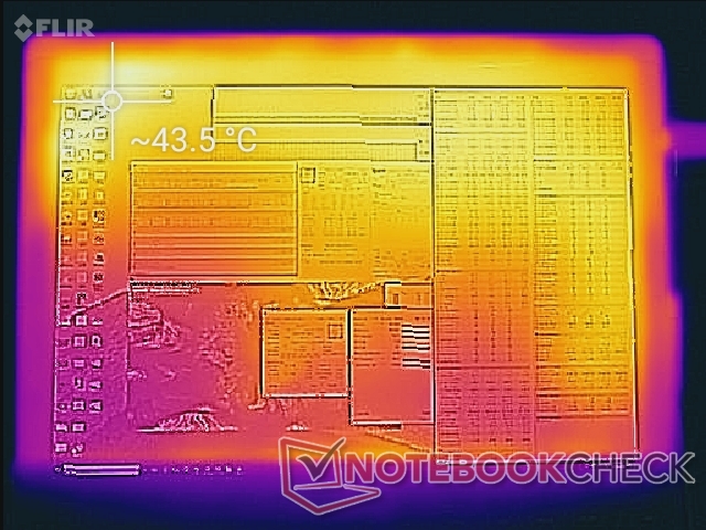 (±) La temperatura massima sul lato superiore è di 43.6 °C / 110 F, rispetto alla media di 35.4 °C / 96 F, che varia da 19.6 a 60 °C per questa classe Convertible.