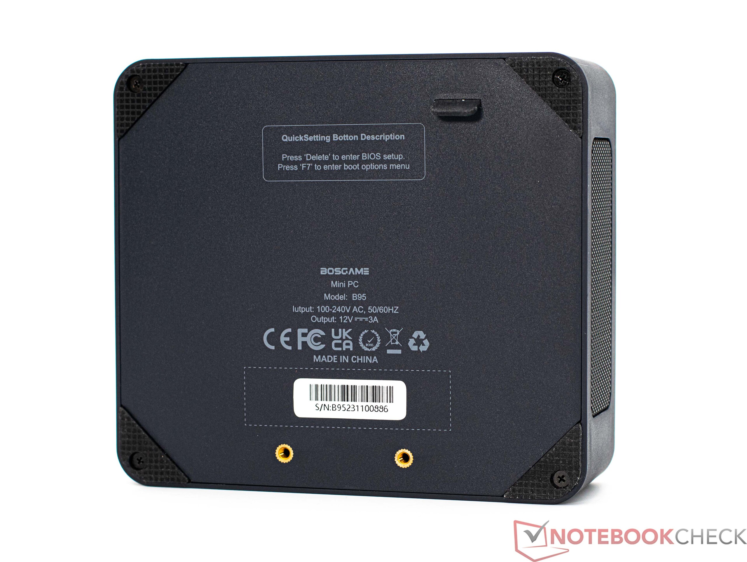 Con un peso di poco inferiore ai 400 grammi, la Bosgame è un po' più pesante rispetto alla NiPoGi GK3PLUS. Nonostante ciò, riteniamo che il Bosgame abbia un chiaro vantaggio rispetto alla concorrenza, in quanto il dispositivo è notevolmente più compatto e occupa molto meno spazio sulla scrivania. Chiunque sia alla ricerca di un Mini PC ancora più compatto dovrebbe dare un'occhiata al Ace Magician T8Pro. Molti computer molto piccoli possono essere fissati sul retro di un monitor con l'aiuto di un supporto VESA. Anche Bosgame offre questa possibilità e nella confezione si trova tutto il necessario per l'installazione.
