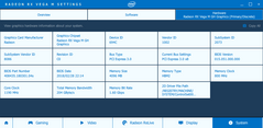Il software di impostazione Radeon RX Vega M è quasi identico al menu AMD Radeon Settings che si trova sulle GPU Radeon più recenti, ma con una nuova mano di vernice blu. Gli utenti possono accedere alle funzioni specifiche di Radeon come ReLive, WattMan, Chill, FreeSync e alle informazioni sull'hardware di base attraverso il menu delle impostazioni. Molte di queste funzioni sono nascoste attraverso i menu di ramificazione che possono essere fastidiosi per gli utenti che non hanno familiarità con la configurazione del menu. Forse una funzione di "Ricerca" potrebbe facilitare la navigazione.