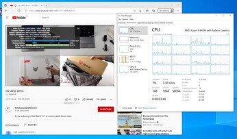 Nei benchmark sintetici, il Minisforum EliteMini HX90 offre una velocità di lavoro molto elevata per il puro lavoro d'ufficio e la produttività. Come nel caso delMinisforum EliteMini HM90l'ElteMini HX90 manca di una scheda grafica dedicata, ed è per questo che il divario tra l'Intel Ghost Canyon NUC e loZotac Magnus Onediventa significativamente più grande. Le latenze misurate sotto carico e durante la riproduzione di video 4K sono buone e non ci sono dropout. L'iGPU è utilizzata per circa il 30% durante la riproduzione. Tuttavia, le latenze aumentano leggermente dopo l'avvio di Prime95.