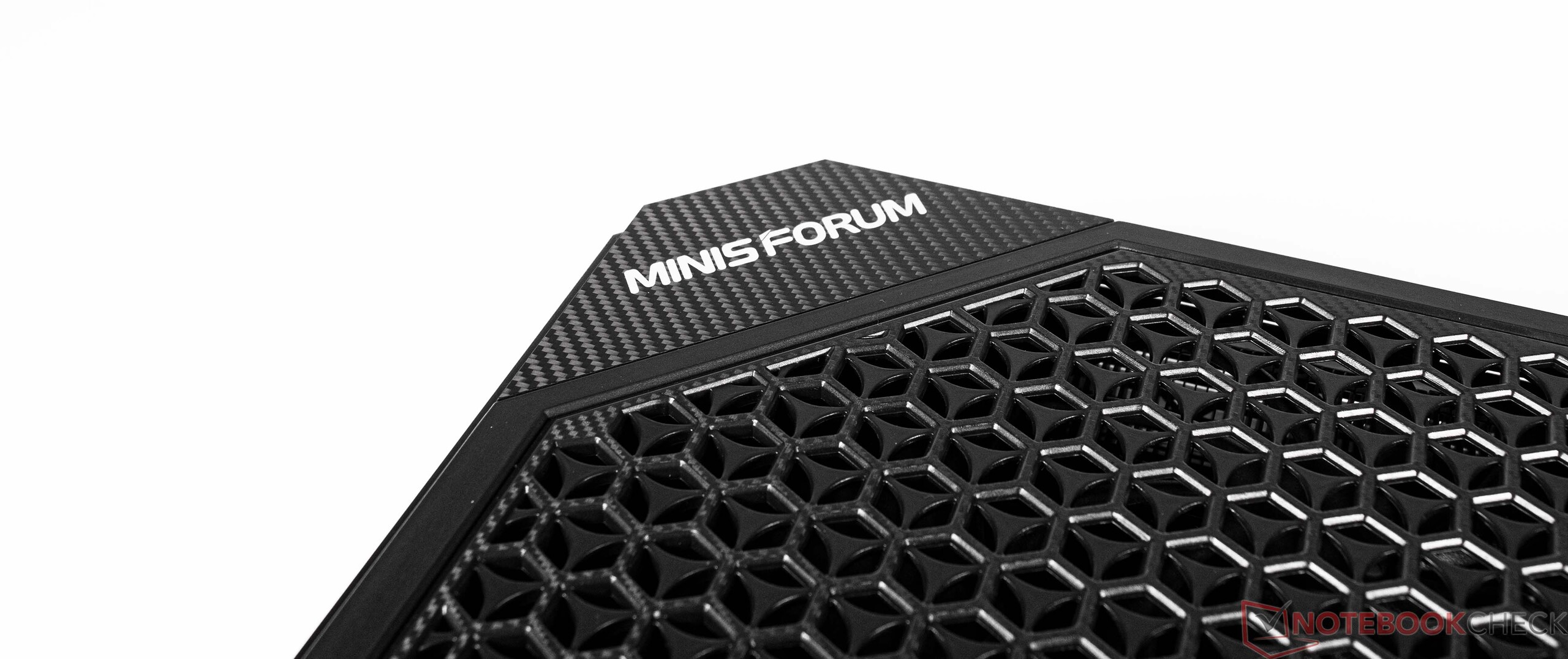 Dal punto di vista visivo, non ci sono praticamente differenze tra i modelli Minisforum Neptune Serie HX90Ge il Minisforum Neptune Series HX99G. Il case continua a essere costruito principalmente in plastica, con l'aggiunta di alcuni piccoli elementi visivi in carbonio. La lavorazione della nostra unità di prova è buona, anche se avremmo apprezzato una selezione di materiali di qualità superiore. Con laMinisforum Neptune Serie NAD9il produttore ha già dimostrato che le cose possono essere fatte anche in modo diverso. Il computer include un supporto che consente di posizionarlo verticalmente sulla scrivania. Ma non è necessario utilizzarlo, poiché è possibile utilizzare il dispositivo anche in orizzontale senza problemi.