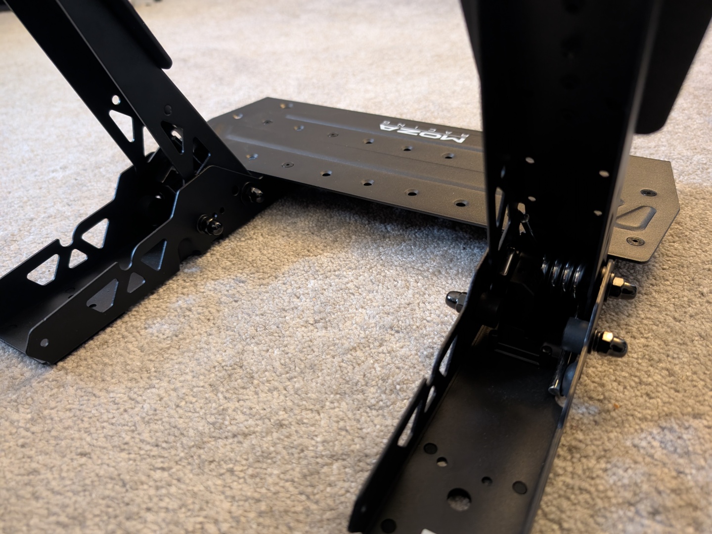 Infine, il sistema di pedali comprende un acceleratore e un freno con spazio per un attacco per la frizione (venduto separatamente). Sono regolabili, nel senso che possono essere avvicinati o allontanati, e possono anche essere staccati per essere montati individualmente in un impianto, ma sono caricati a molla con sensori Hall. Per saperne di più, si veda la sezione sulle prestazioni. Ci sono cuscinetti di gomma sul fondo per evitare di scivolare su pavimenti in moquette o in legno e la qualità costruttiva in generale è solida.