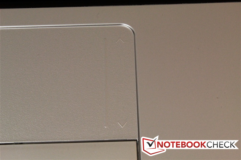 Come la tastiera, il touchpad è spostato verso sinistra. La superficie irruvidita garantisce un feeling piacevole durante l'uso. Sulla destra c'è una barra di scorrimento prominente.