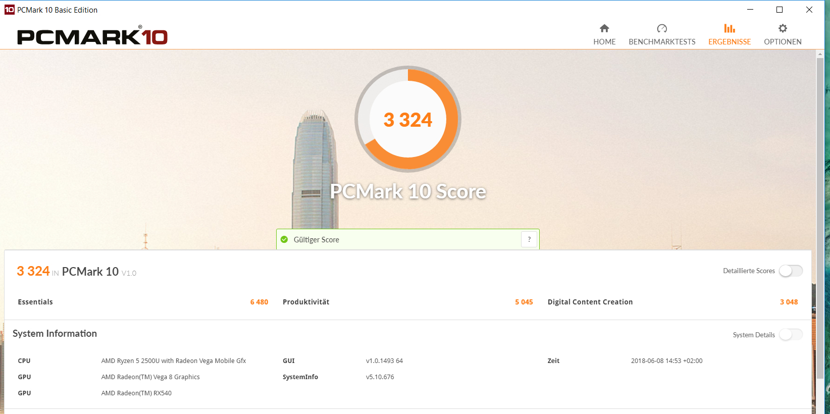 | Media AMD Ryzen 5 2500U (1138 - 1443, n=10) | |