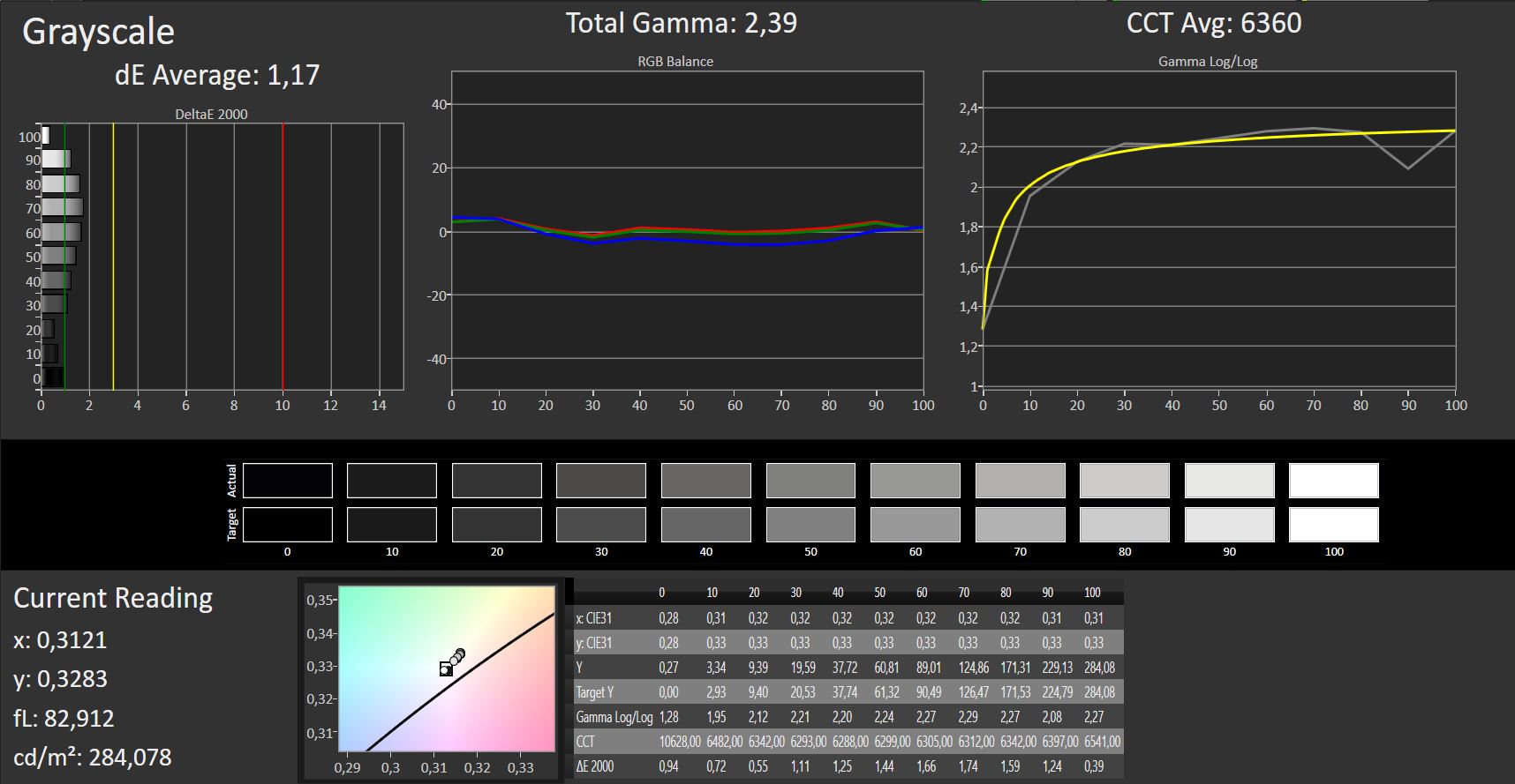 ΔE Greyscale Calman: 1.17 | ∀{0.09-98 Ø5}