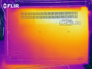Il notebook non si riscalda eccessivamente. In alcuni punti durante la prova da sforzo supera il segno dei quaranta gradi Celsius (104 °F). I nostri stress test rappresentano uno scenario estremo che non si verifica nell'uso quotidiano. Con esso, verifichiamo se il sistema è stabile anche a pieno carico.