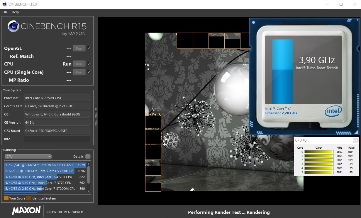 Il processore esegue i test multi-thread dei benchmark Cinebench a 3,9 GHz e i test single-thread a 3,9 - 4,1 GHz. Mentre questi sono i valori rilevato con il collegamento alla rete elettrica, la CPU funziona a 800 MHz quando si usa la batteria.
