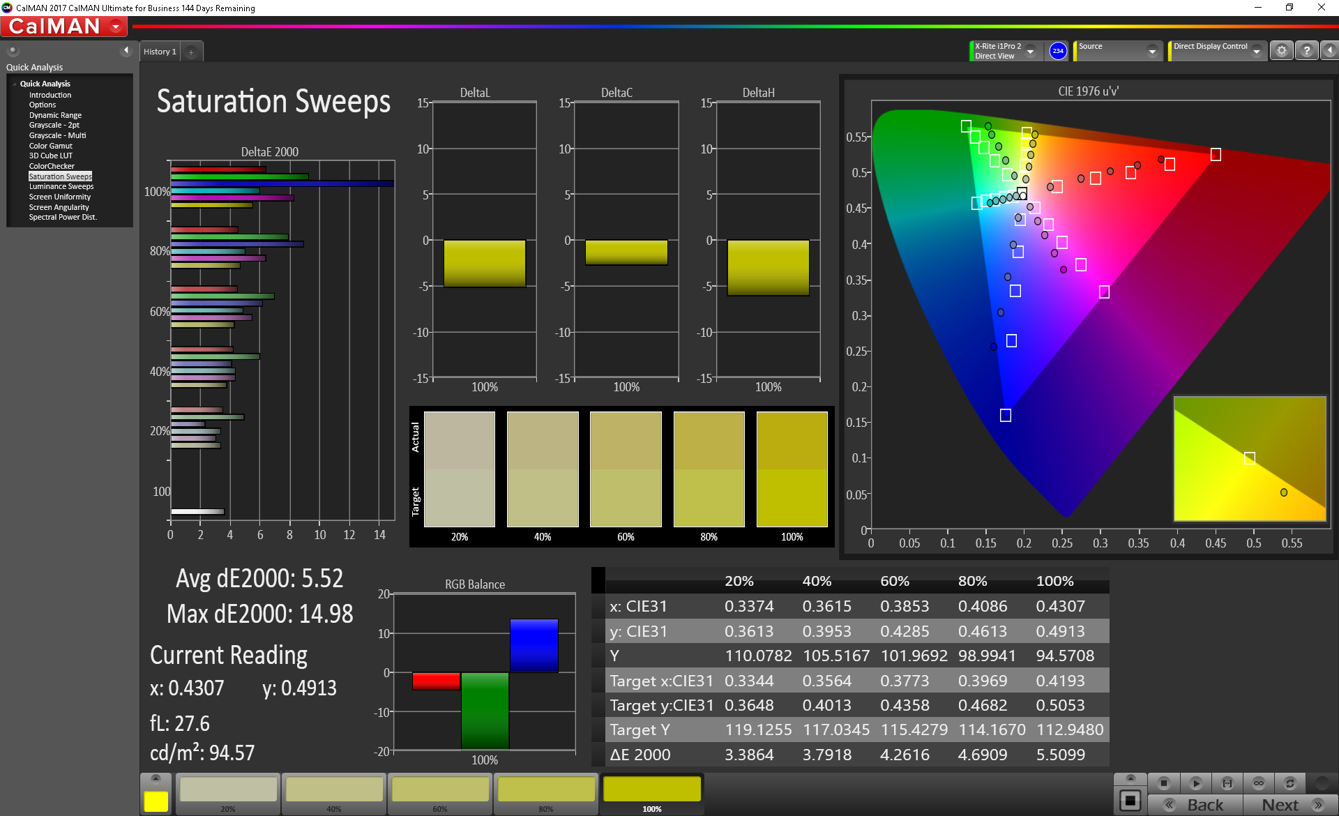 ΔE Greyscale Calman: 2.8 | ∀{0.09-98 Ø5}
