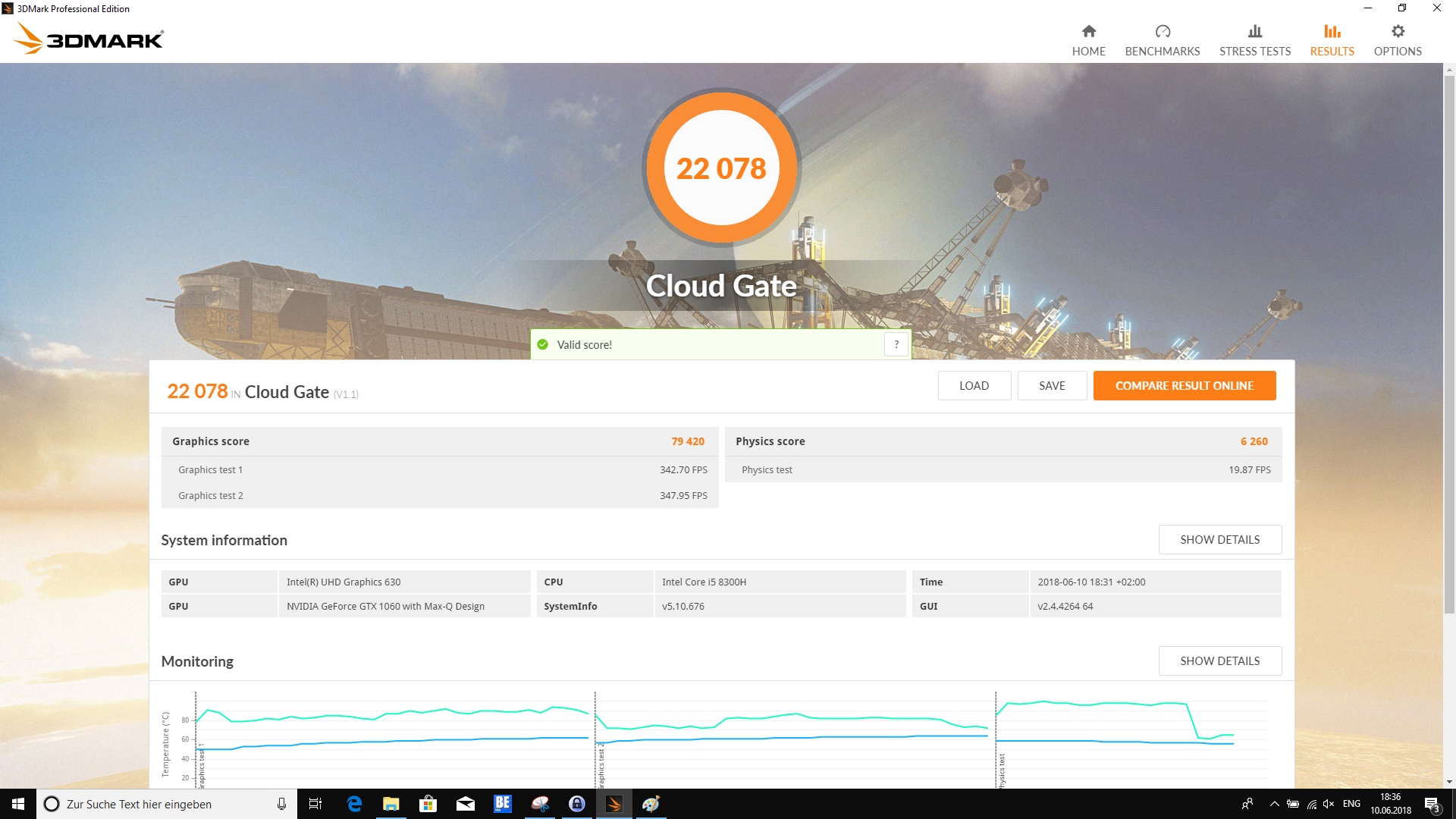 Inoltre, il consumo di energia leggermente superiore è anche dovuto all'Intel Core i5-8300H che può consumare fino a 78 watt per brevi periodi. L'alimentatore da 180 watt non ha ancora raggiunto i suoi limiti ed è sufficientemente dimensionato.