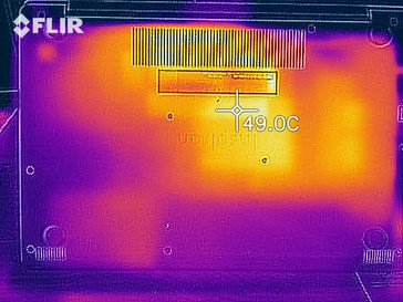 Il computer portatile si riscalda moderatamente. Abbiamo misurato solo un punto caldo che raggiunge poco più di 41 °C (~106 °F) durante la nostra prova di stress.
