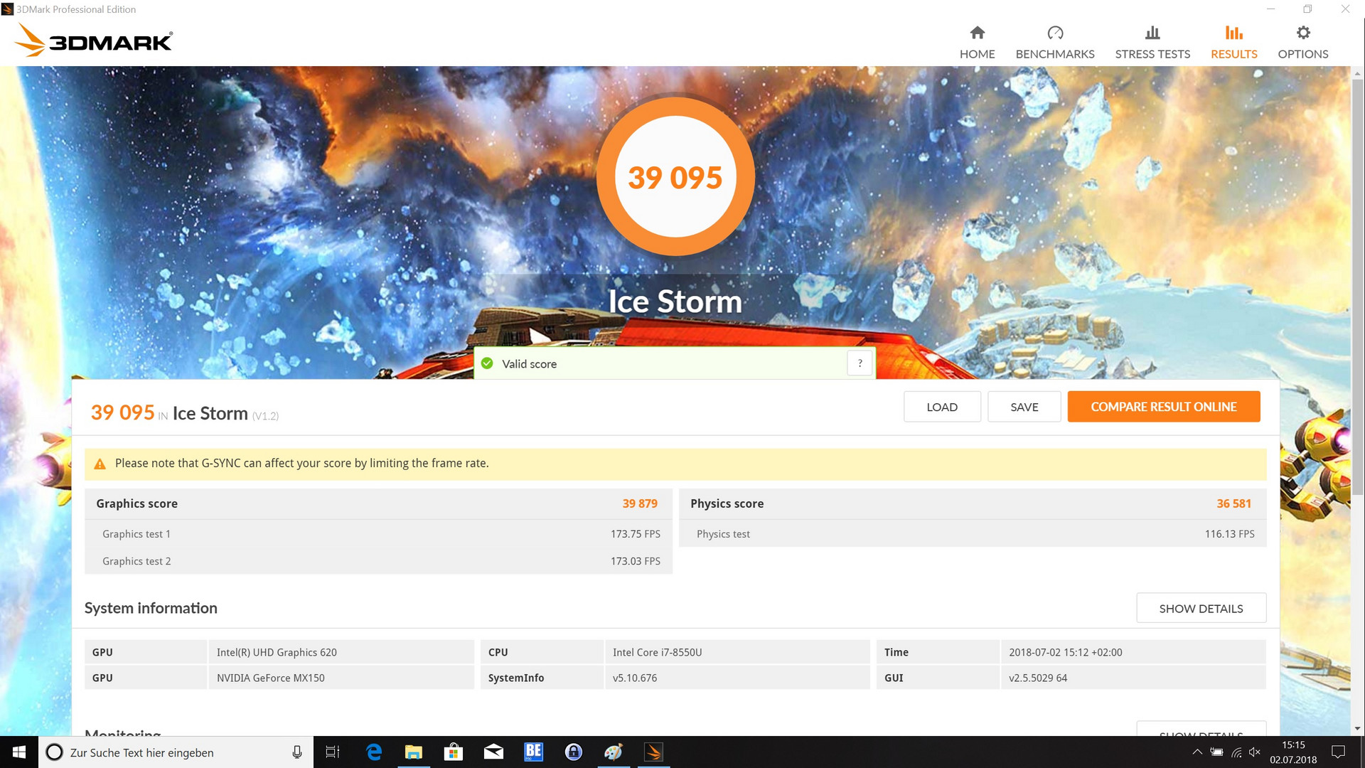 Le prestazioni della GeForce MX150 invece sono state limitate a 1469-1532 MHz sotto un carico di lavoro sostenuto. Per ciò i risultati del secondo giro di 3DMark sono più bassi rispetto a quelli dopo un boot "a freddo". C'è da considerare che questo stress test rappresenta uno scenario estremo e poco realistico, quindi queste limitazioni non necessariamente si riflettono sull'utilizzo di tutti i giorni.