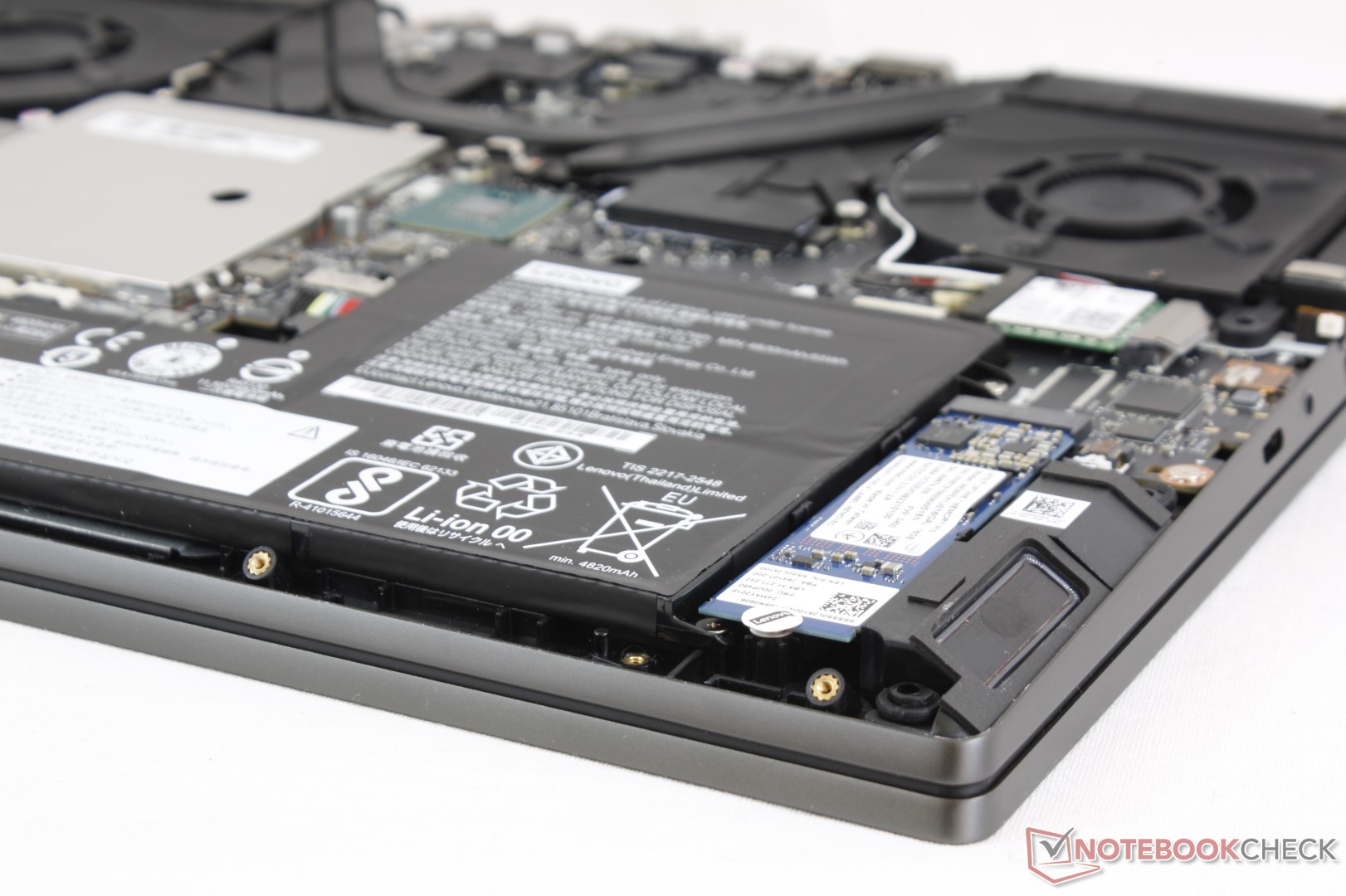 La manutenzione richiede la rimozione di 11 viti a croce dal pannello inferiore. Come mostrato dalle nostre immagini qui sotto, ci sono molte somiglianze tra il Legion Y730 e il Y530 in termini di layout e design. Una copertura in alluminio rende l'accesso alla RAM più ingombrante.