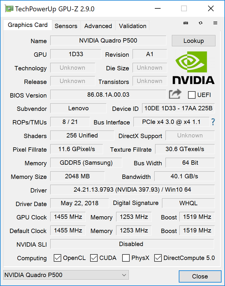 | Lenovo ThinkPad P52S-20LB001FUS Quadro P500, i7-8650U, Samsung SSD PM981 MZVLB1T0HALR | Lenovo ThinkPad P52s-20LB000HGE Quadro P500, i5-8550U, Samsung PM961 MZVLW256HEHP | Lenovo ThinkPad P51s 20HB000SGE Quadro M520, i7-7600U, Samsung SSD PM961 1TB M.2 PCIe 3.0 x4 NVMe (MZVLW1T0) | HP ZBook 15u G5 2ZC05EA Radeon Pro WX 3100, i5-8550U, Toshiba XG5 KXG50ZNV256G | Dell Precision 3520 Quadro M620, i7-7820HQ, Toshiba XG4 NVMe (THNSN5512GPUK) | Dell Precision 5520 UHD Quadro M1200, E3-1505M v6, Samsung SM961 MZVKW512HMJP m.2 PCI-e | MSI WS63VR 7RL-023US Quadro P4000 Max-Q, i7-7700HQ, Toshiba NVMe THNSN5512GPU7 | |