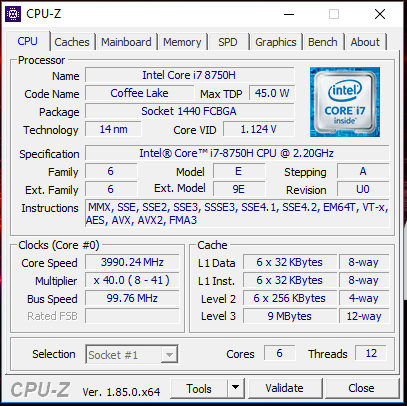 Il GE73 è alimentato da un processore Core i7-8750H (Coffee Lake) hexa-core. Si tratta di un chip mobile con un TDP di 45 watt, ma può essere brevemente aumentato a 90 watt. Il processore funziona a una velocità di clock di base di 2,2 GHz. La velocità di clock può essere aumentata a 3,9 GHz (sei core), 4 GHz (quattro core) o 4,1 GHz (uno o due core) tramite turbo.