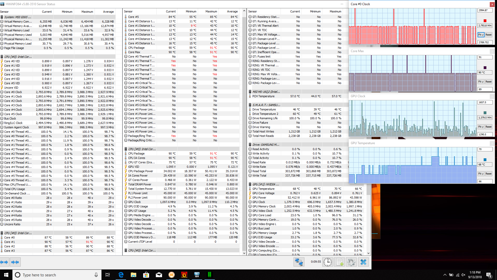 | Prime95 + FurMark Stress | 2.8 | 1366 - 1531 | 90 | 70 |