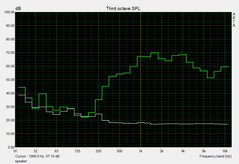 Sotto carico, l'XMG A707 funziona ragionevolmente bene: 42-46 dB(A) non è né silenzioso né particolarmente rumoroso. Gli altri concorrenti dotati di una GTX 1050 Ti - l'Acer Helios 300 e l'Asus GL703GE - sono spesso più rumorosi in modalità 3D.