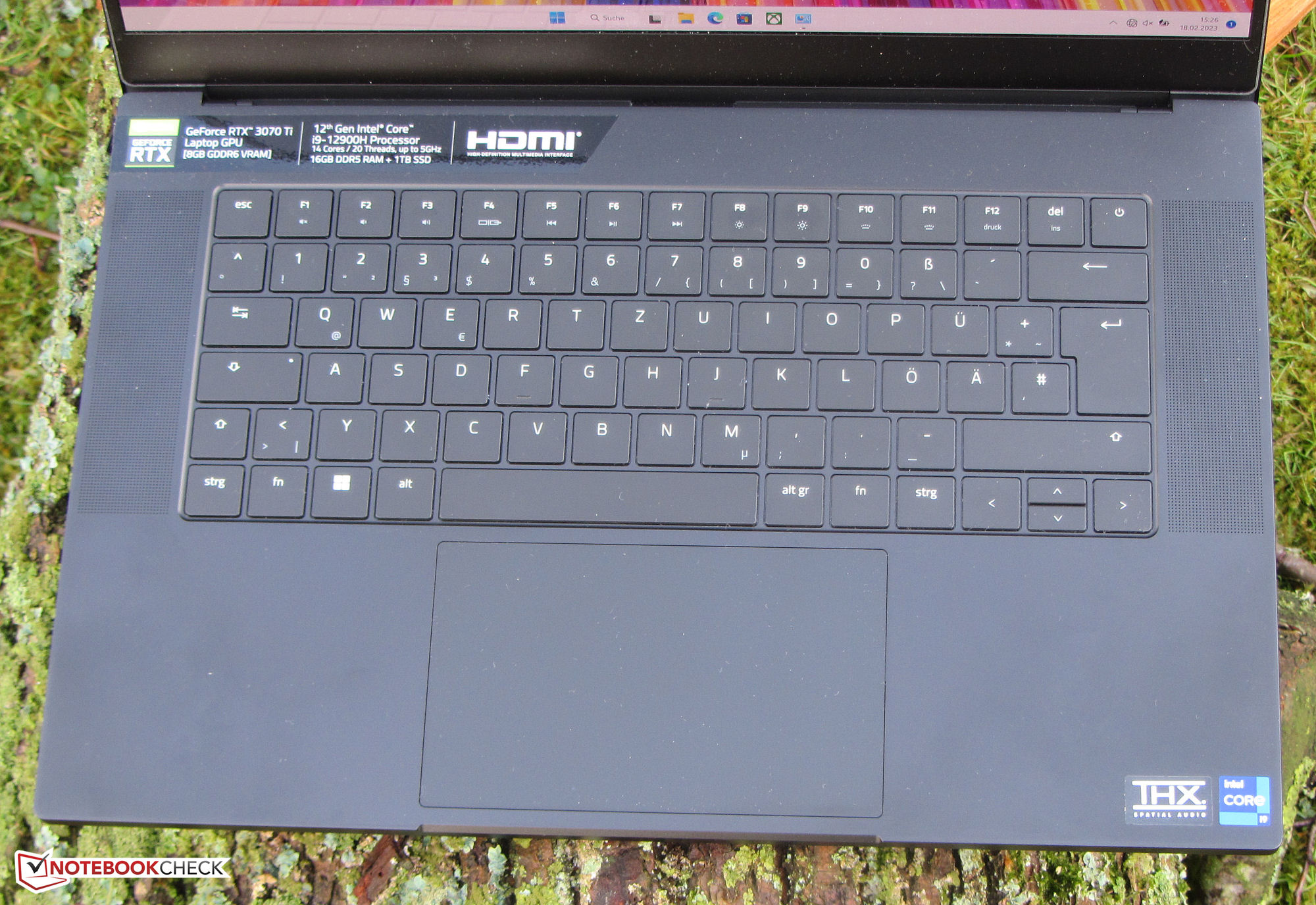 Le informazioni riguardanti il case, le caratteristiche, i dispositivi di input e gli altoparlanti sono già a portata di mano nella nostra recensione del fratello, (12800H, RTX 3080 Ti). Quest'ultimo è dotato di un pannello LED (QHD) - la differenza più rilevante rispetto al dispositivo attuale.