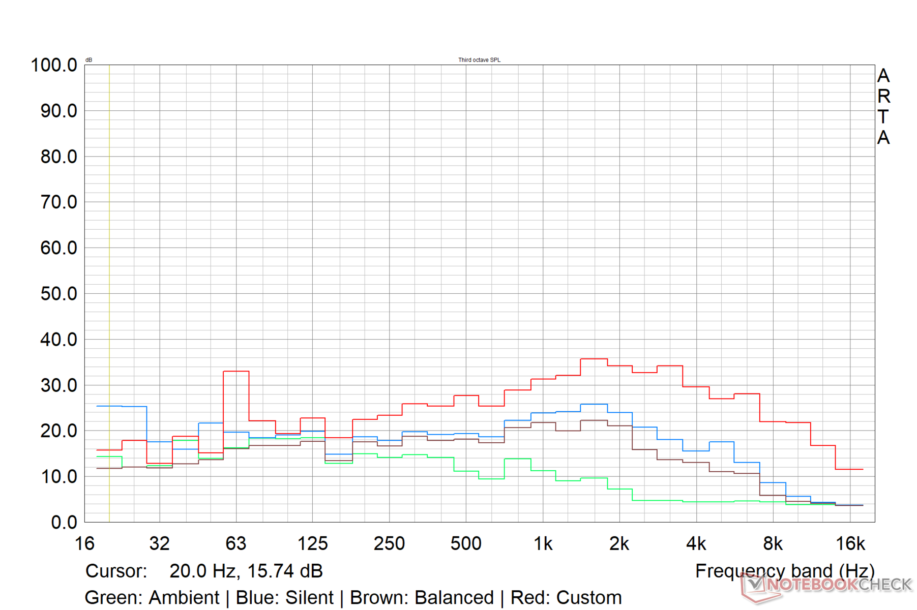 L'SPL di picco di 75 dB(A) sembra essere un po' più basso di quello che abbiamo visto in precedenza con il Blade 16 RTX 4080 e il Blade 18, ma è abbastanza forte da riempire una stanza di medie dimensioni.