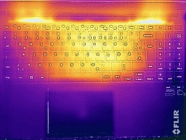 Il portatile non presenta problemi termici. L'intero chassis rimane bello fresco quando il dispositivo gestisce attività meno impegnative. Anche a pieno carico, abbiamo misurato una temperatura superficiale massima di 47°C (116,6°F) in un punto caldo della parte inferiore, al centro verso il retro. È comunque possibile appoggiare il dispositivo sulle ginocchia quando diventa così caldo. Durante lo stress test, sia la CPU che la GPU hanno subito un significativo throttling perché l'assorbimento di potenza è stato limitato a soli 10 e 20 watt rispettivamente.